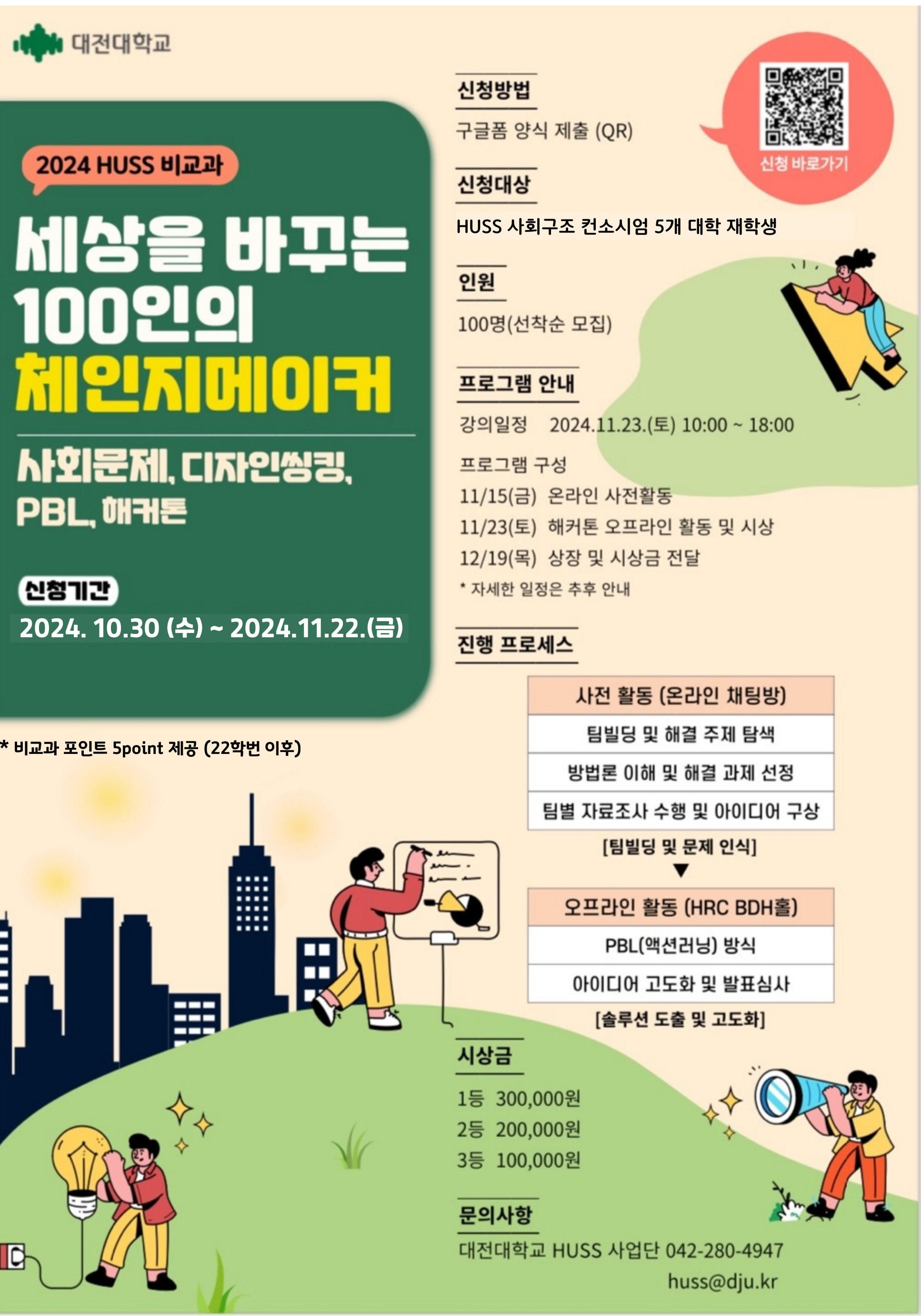 상명 [비교과] [HUSS 인문사회 융합인재양성사업단] 인문사회융합인재양성사업(HUSS) ‘세상을 바꾸는 100인의 체인지메이커' 참가자 모집 안내 -
