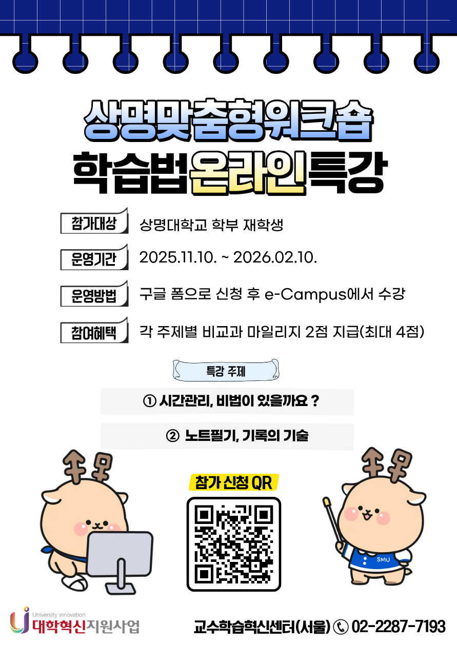 상명 [비교과] [교수학습혁신센터(서울)]2025학년도 2학기 상명맞춤형워크숍_학습법 온라인 특강