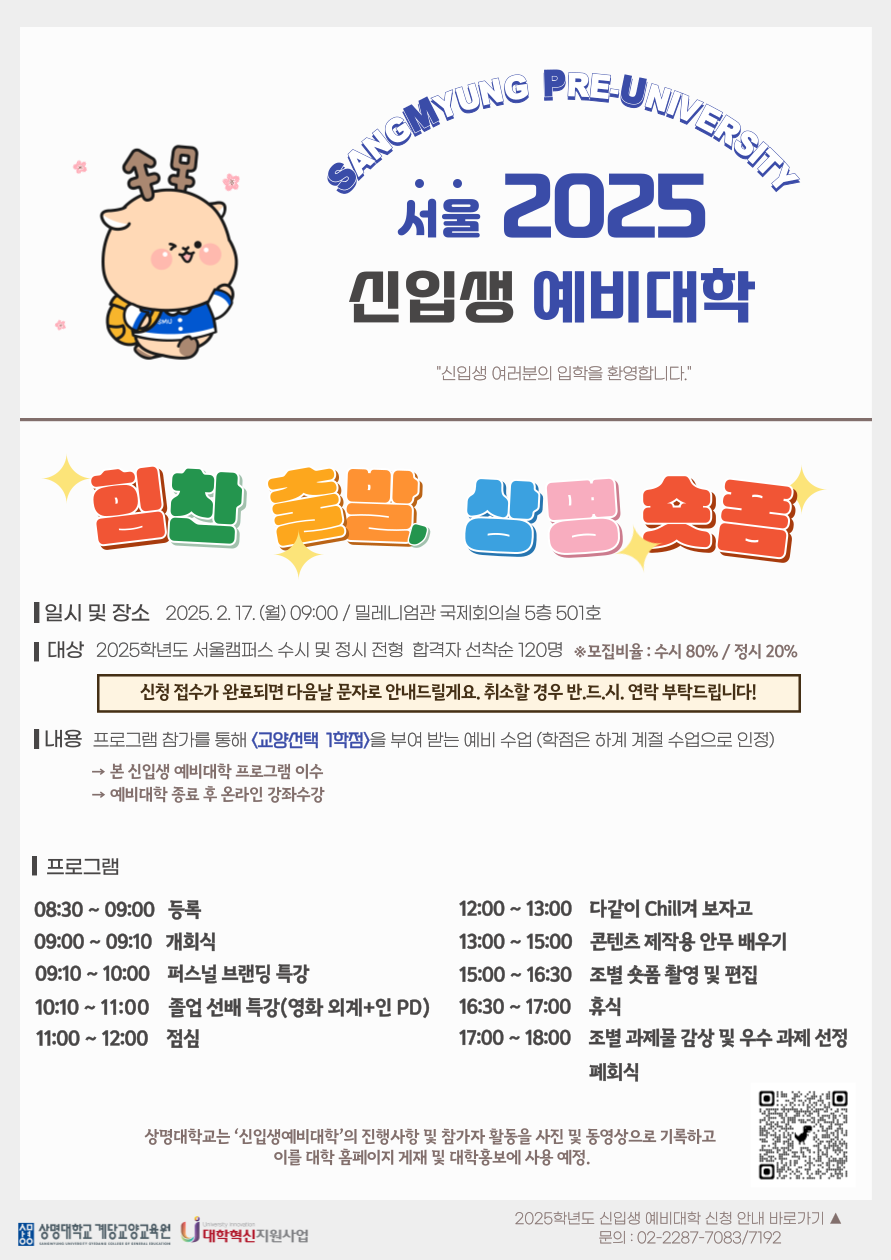 서울 [일반] [계당교양교육원] 2025학년도 신입생 예비대학 안내 (서울) -